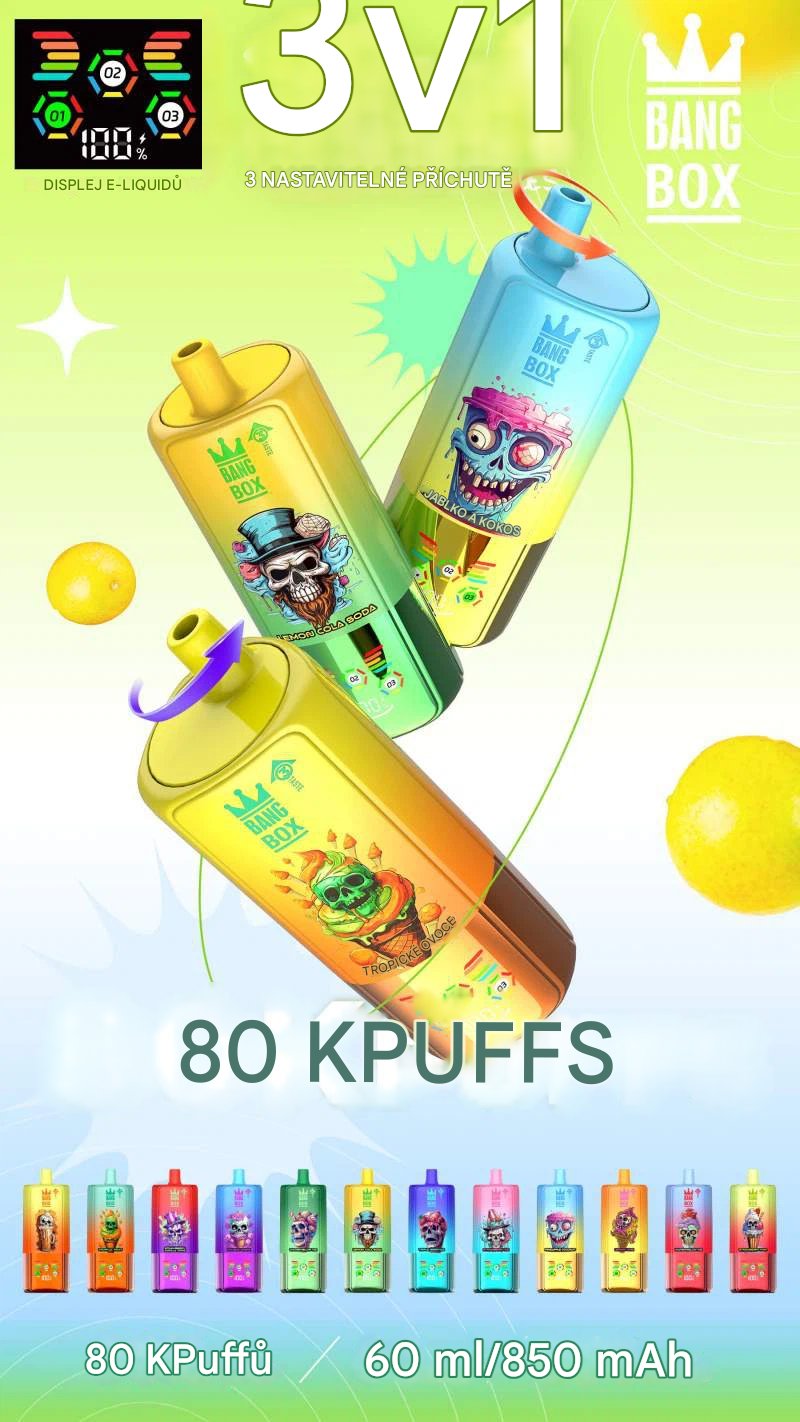 Minden kivételes vape lelke az íze, és a BANGBOX 80000 páratlan érzékszervi élményt kínál. Gondosan válogatott kínálatunk klasszikus kedvenc összetevőket ötvöz merész és innovatív kombinációkkal, így mindenki találhat magának valót: